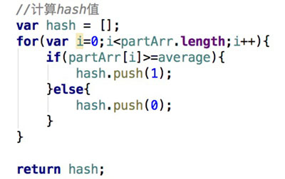 6、计算hash值,在缩小的DCT矩阵中,如果某一位的值大于或等于平均值则设置为1,小于则设置为0,按照某一顺序得到一个由0、1组成的64位的字符串。