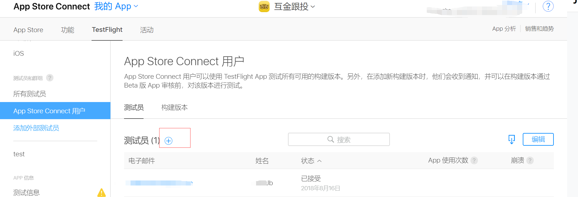 内部测试主要是指iTunes Connect在你的开发团队里参与技术开发或者管理的成员,最多可以邀请25个内部成员进行测试,没有审核的限制,直接添加测试人员,就可以进行测试。