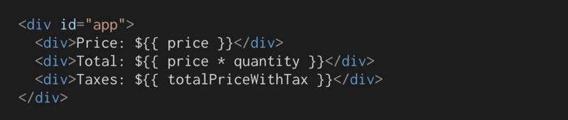 在Vue,我们希望每当价格或数量更新时,总计都会得到更新。我们想要: