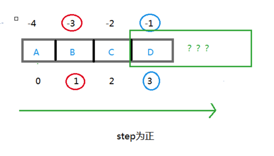 在 step 的符号一定的情况下,start 和 end 可以混合使用正向和反向索引,无论怎样,你都要保证