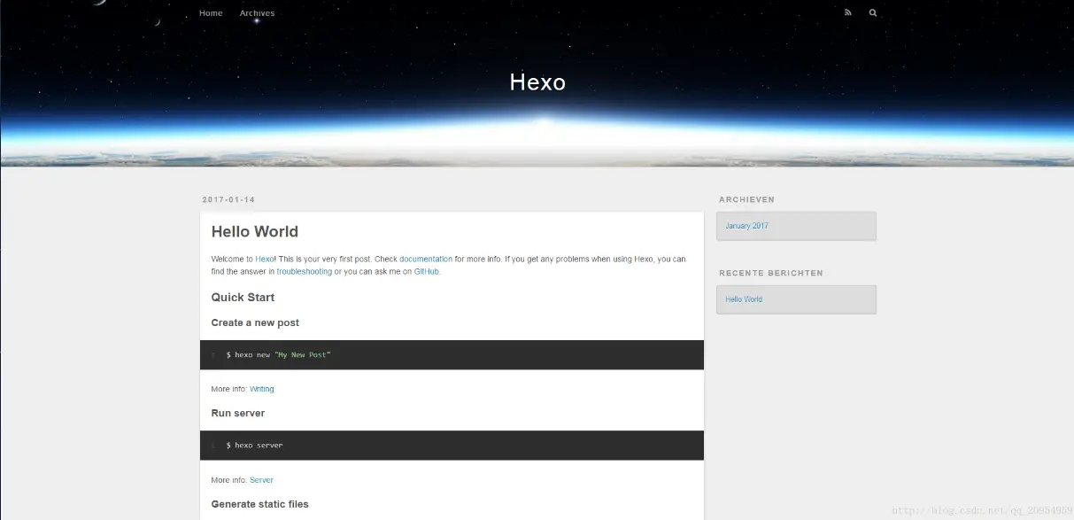 经过以上3步,Hexo就初始化成功了,下面我们进行一下本地测试