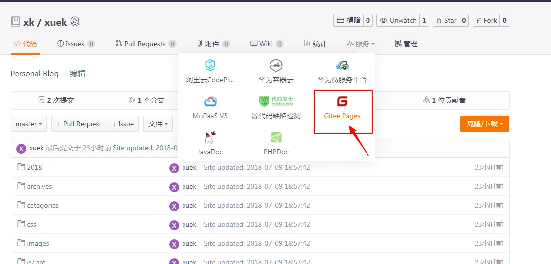 1.进入我们码云的项目里,会发现Blog的静态文件已经上传到项目中了