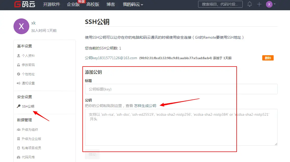 $ git config --global user.email+空格+你的邮箱(最好和码云的一样)