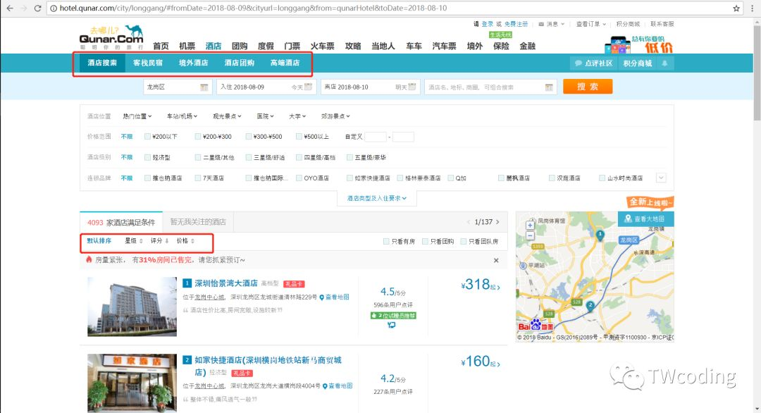 之前发了一篇爬取去哪儿自由行(可采集最少10万条数据)的文章后,有一个读者在后台问到我怎么爬取去哪儿酒店的数据。当时简单看了下,觉得难度不大。就跟他讲了下思路。因为当时爬取自由行的网站选取的是移动端。为了能让读者学习到更多的知识,我们今天选取了去哪儿的电脑端来进行爬取。其实爬虫的思路都是一样的,无非就是先获取网页信息,然后再解析。解析之后就提取所要的数据。如果要对数据要进一步的分析的话。还需要对数据进行清洗,建模等一系列操作。今天作者给大家带来的就是去哪儿酒店酒店信息的获取,并进行数据清洗,分析。