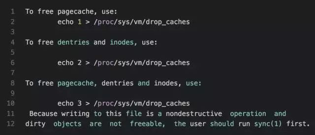 从这个介绍可以看出,当 drop_caches 文件为1时,这时将释放 pagecache 中可释放的部分(有些 cache 是不能通过这个释放的),当 drop_caches 为2时,这时将释放 dentries 和 inodes 缓存,当 drop_caches 为3时,这同时释放上述两项。