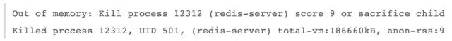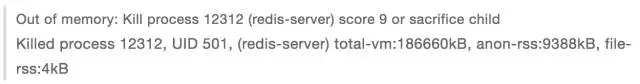 之前在提及 OOM 时,说道 redis 因为 OOM 被杀死,如下: