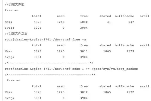 说到这,可以小结下,进程空间中代码段,数据段,动态链接库(共享文件映射),mmap 共享匿名映射都存在于 cache 中,但是这些内存页都有被进程引用,所以是不能释放的,基于 tmpfs 的 ipc 进程间通信机制的生命周期是随内核,因此也是不能通过 drop_caches 释放。