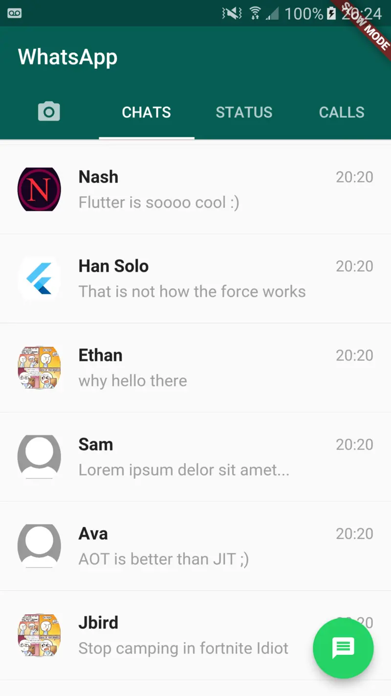 在使用Flutter构建WhatsApp之前,我们创建了一个带有选项卡和导航的基本appbar。 今天,我们将使用ListView.builder创建聊天的滚动列表
