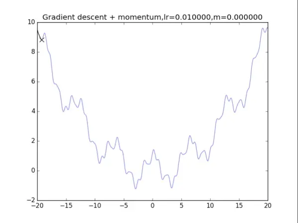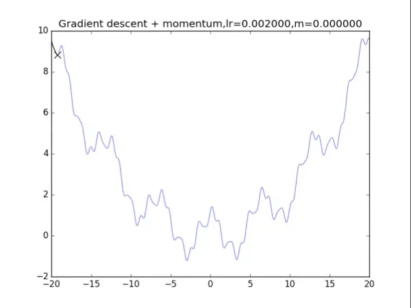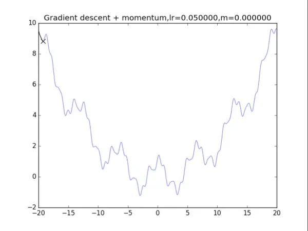 v = m * v - lr * df(x)