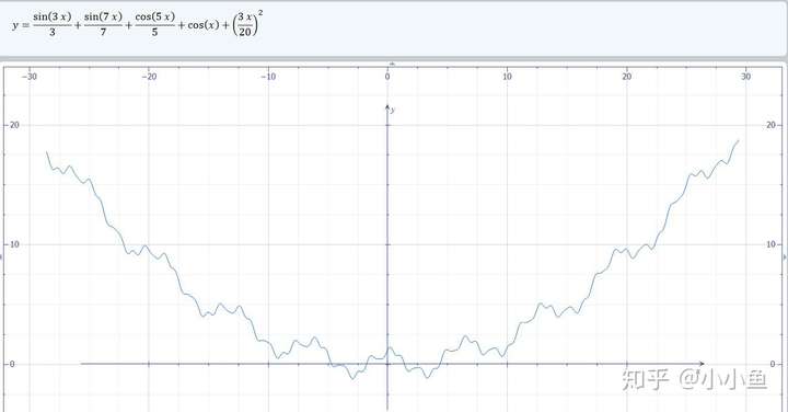 return (0.15*x)**2 + np.cos(x) + np.sin(3*x)/3 + np.cos(5*x)/5 + np.sin(7*x)/7