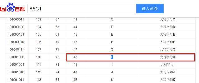 先从百度上搜索ASCII,得知大写字母的H的十六进制编码为48.