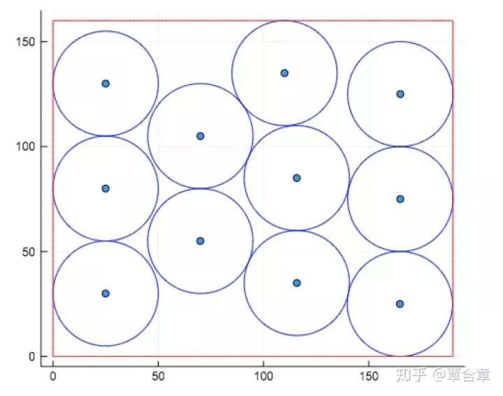 # 考虑这样一组问题r = 25d1 = 160d2 = 190k = 11;# MIOfunction PackCirclesGen(r,d1,d2,k,Method,MaxTime)