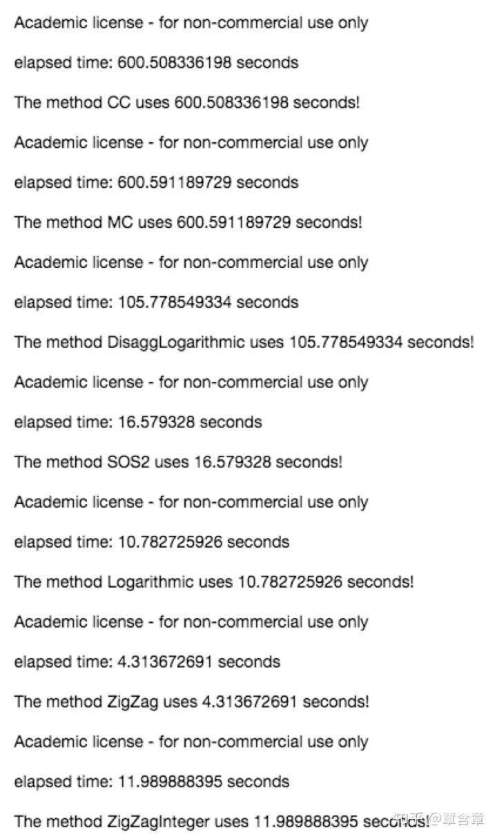 我们注意到不同的线性分段逼近方法的计算速度是大不一样的,ZigZag的速度最快,CC/MC这样的formulation一般不建议用。详细的理论方法请见:Huchette, Joey, and Juan Pablo Vielma. "Nonconvex piecewise linear functions: Advanced formulations and simple modeling tools."