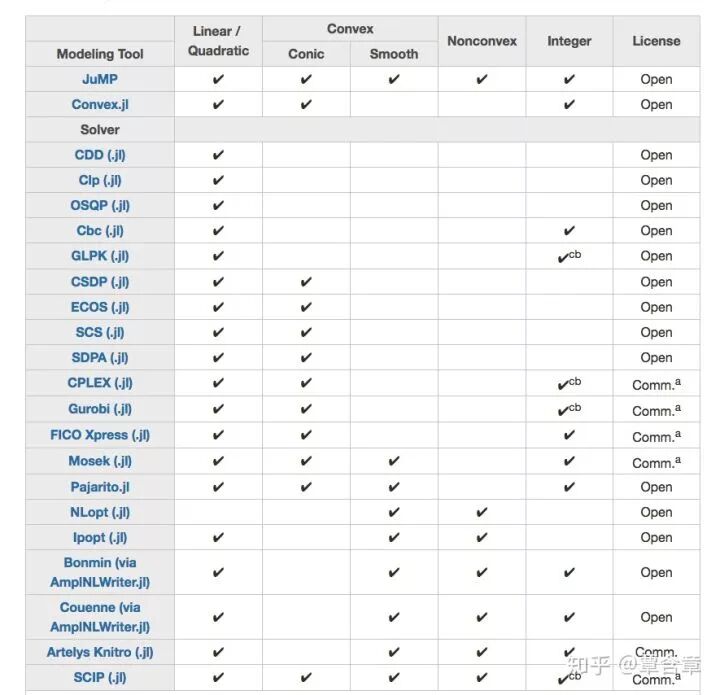 其它JuMP支持的优化拓展包可见: https://www.juliaopt.org/packages/