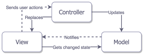 Controller / Presenter / ViewModel - 模型和视图之间的粘合剂或介体,通常负责通过响应用户在View上执行的操作以及使用模型更改更新视图来更改模型。