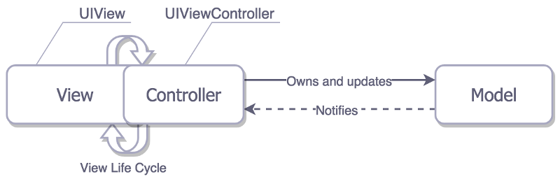 Cocoa MVC鼓励您编写Massive View控制器,因为它们参与了View的生命周期,很难说它们是分开的。 虽然您仍然可以将一些业务逻辑和数据转换卸载到模型,但是在将工作卸载到View时没有太多选择,在大多数情况下,View的所有责任都是发送操作 到控制器。 视图控制器最终成为所有事物的委托和数据源,并且通常负责调度和取消网络请求,并且......您可以对其进行命名。