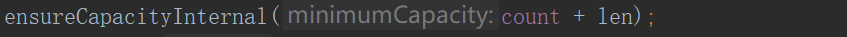 将当前 AbstractStringBuilder 的 count (char[] value 里实际字符的个数) + len (新添加的 str 的长度) 作为 minimumCapacity,然后 minimumCapacity 和value.length (char[] value 数组的大小) 进行比较,如果 minimumCapacity 大于 value.length,则进行扩容,将原数组的数据复制到新创建的数组中。
