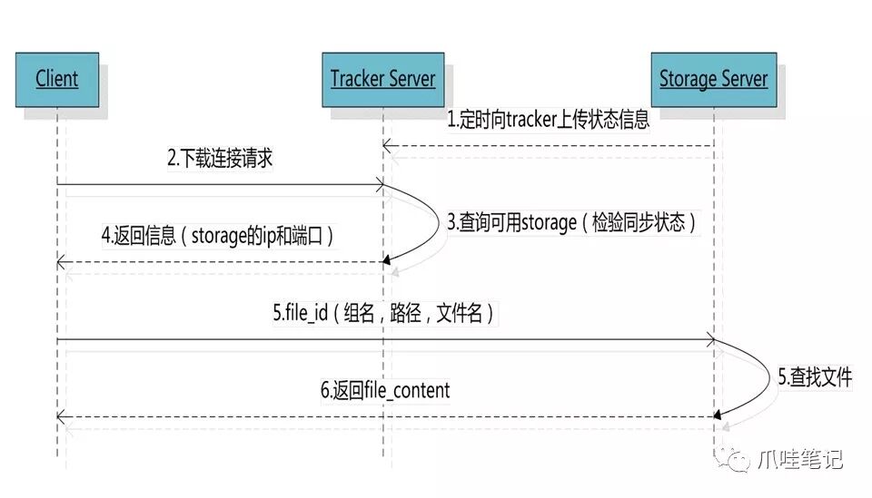 跟upload file一样,在downloadfile时客户端可以选择任意tracker server。tracker发送download请求给某个tracker,必须带上文件名信息,tracke从文件名中解析出文件的group、大小、创建时间等信息,然后为该请求选择一个storage用来服务读请求。