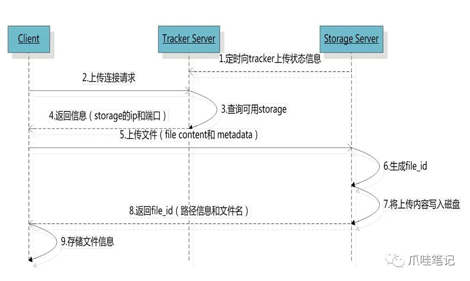 Storage Server会定期的向Tracker Server发送自己的存储信息。当Tracker Server Cluster中的Tracker Server不止一个时,各个Tracker之间的关系是对等的,所以客户端上传时可以选择任意一个Tracker。