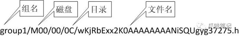 当文件存储到某个子目录后,即认为该文件存储成功,接下来会为该文件生成一个文件名,文件名由group、存储目录、两级子目录、fileid、文件后缀名(由客户端指定,主要用于区分文件类型)拼接而成。