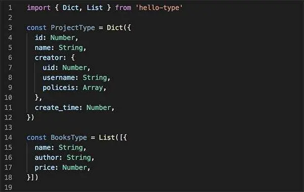 如果你和我一样超级懒不想为了编写一大堆接口、范型、类型写一大堆和业务本身无关的ts代码时,HelloType给你直观的感受,而且完完全全是ES语法,不带半点地方方言。