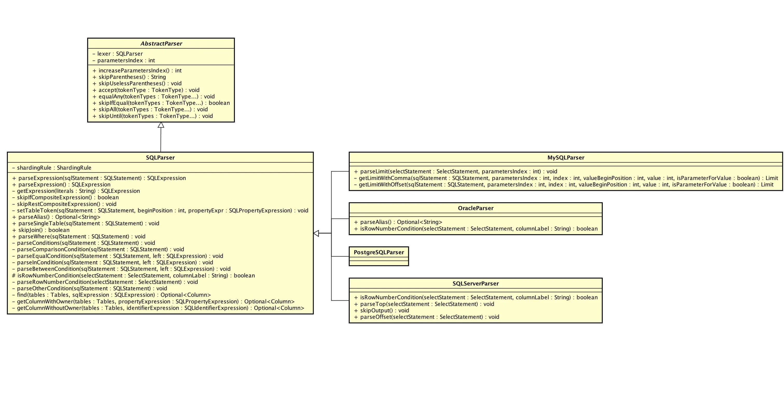 | SelectStatementParser | SelectStatement + AbstractSQLStatement | 《查询SQL解析》 |