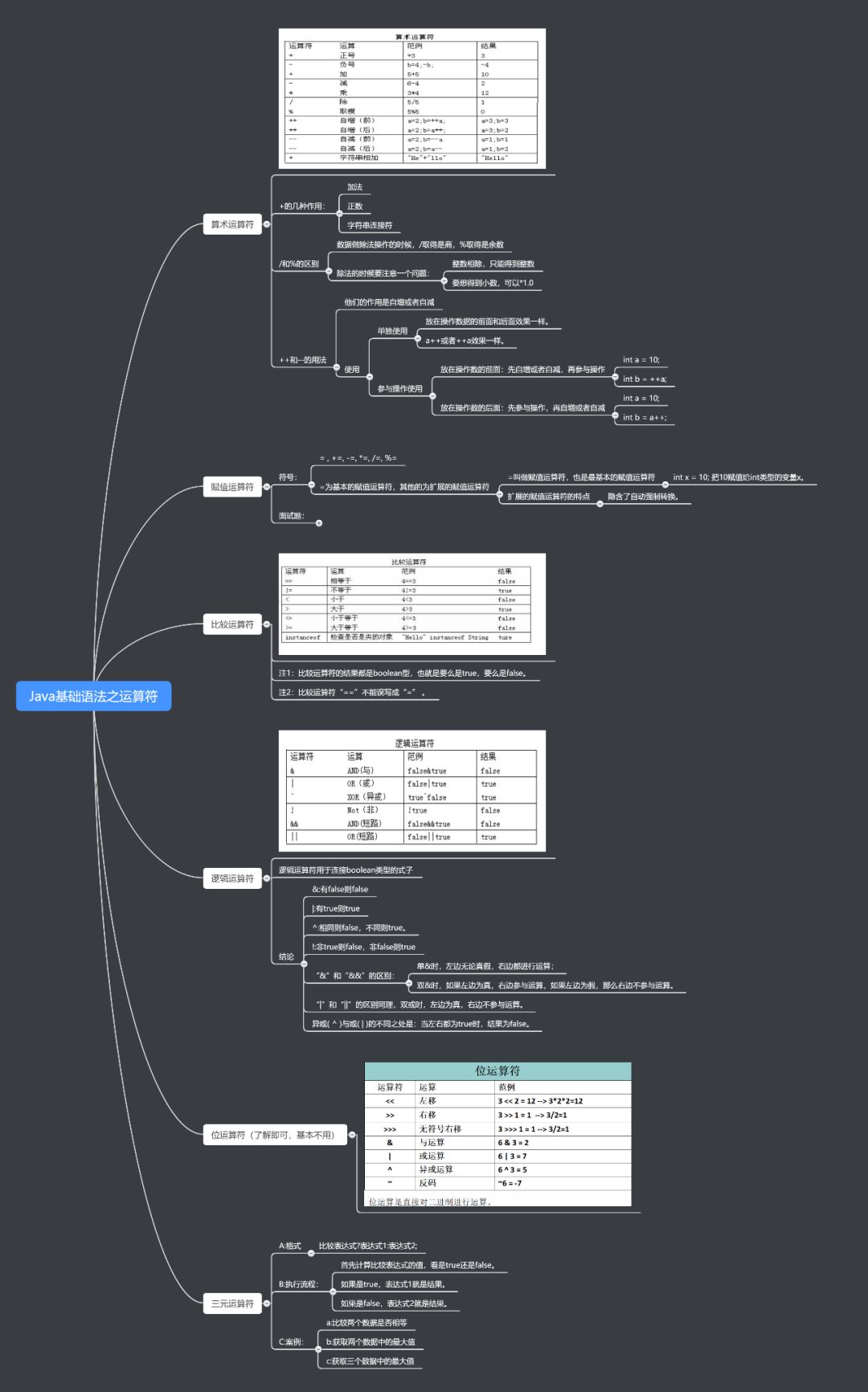 至此「从零开始学习 Java 基础语法(运算符)」已结束。给自己五分钟的时间,复盘下今天这篇文章的内容。我做了一张总的思维导图,供大家回顾今日所学,希望对你们有帮助。