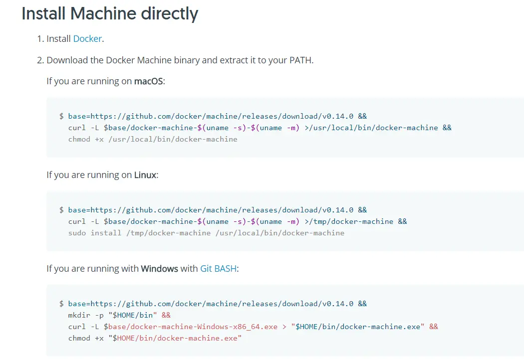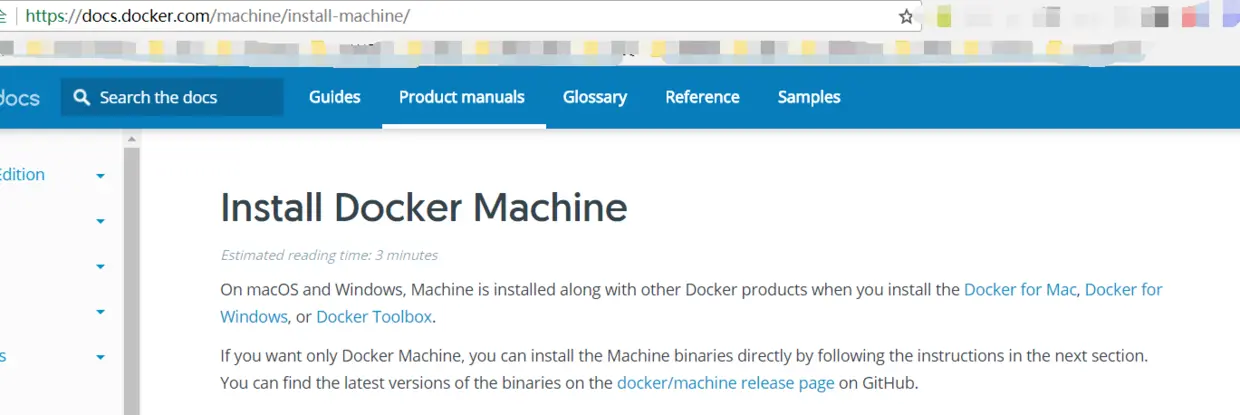 - 如果你不是window10或者是你在mac中已经安装了docker了,但是docker-machine还没安装的话,可以通过官网来进行安装
