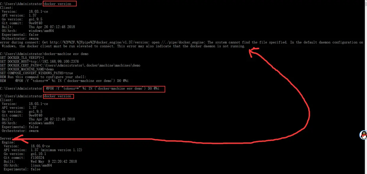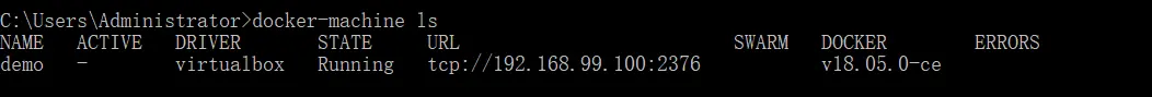 @FOR /f "tokens=*" %i IN ('docker-machine env demo') DO @%i