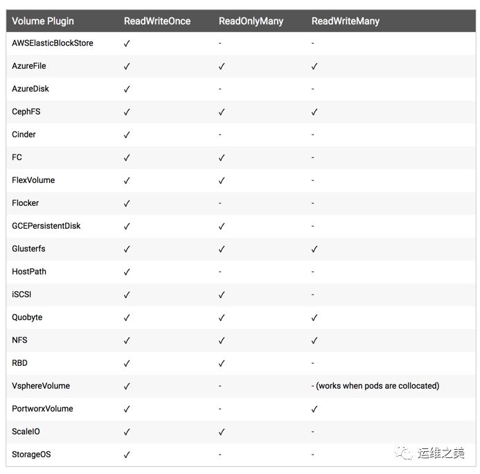 PersistentVolume 通过插件机制实现与共享存储的对接。Kubernetes 目前支持以下插件类型: