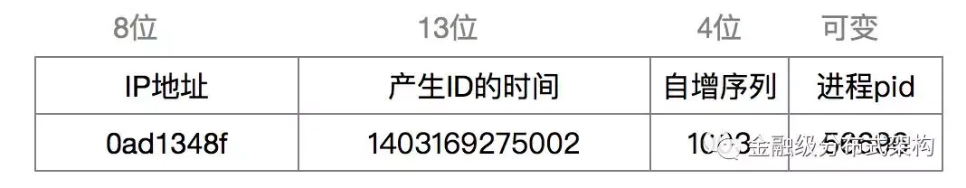 服务器 IP + 产生 ID 时候的时间 + 自增序列 + 当前进程号