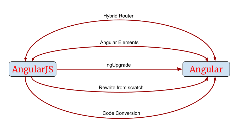 2015 年,谷歌曾推出一个名为 ng-upgrade 的组件,帮助开发者从 Angular 1 顺利迁移至 Angular 2,它能处理依赖注入、组件嵌套、Transclusion (嵌入)、变更检测上的交互,一旦 ng-upgrade 的工作完成,开发者就能够混合并搭配使用 Angular 1 与 2 的服务、组件和视图。