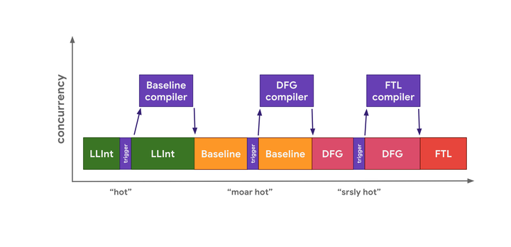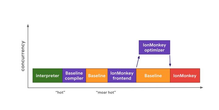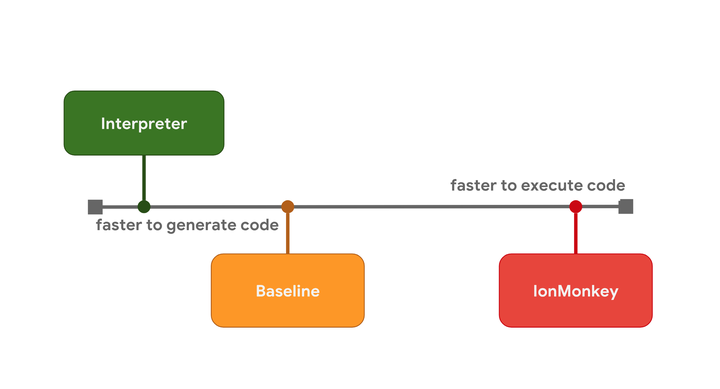 解释器可以快速生成字节码,但字节码执行起来相对较慢。Baseline 生成代码需要花费更长的时间,但能提供更好的运行时性能。最后,IonMonkey 优化编译器花费最长时间来生成机器码,但该代码运行起来非常高效。