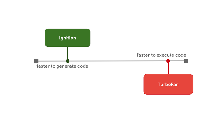 这正是 V8 在使用的模型。它的解释器叫 Ignition,(就原始字节码执行速度而言)是所有引擎中最快的解释器。V8 的优化编译器名为 TurboFan,最终由它生成高度优化的机器码。