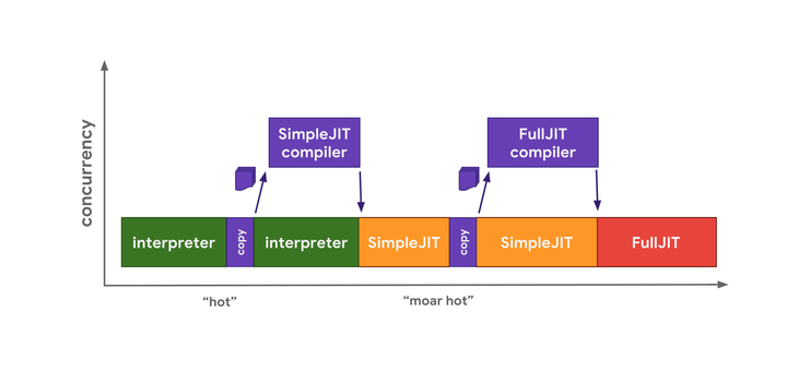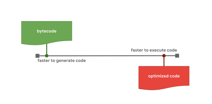 解释器可以快速生成字节码,但字节码通常效率不高。 相比之下,优化编译器虽然需要更长的时间进行处理,但最终会产生更高效的机器码。