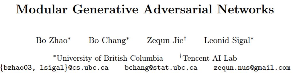 论文:Modular Generative Adversarial Networks
