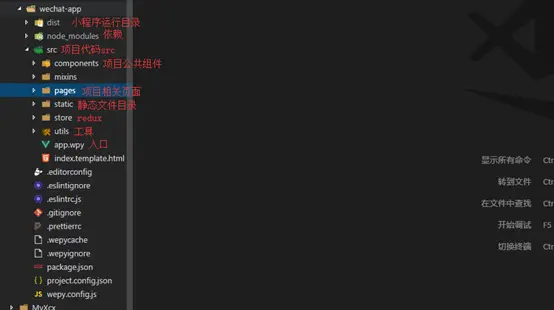 wepy new myproject , 1.7.0之后的版本使用 wepy init standard myproject 初始化项目,使用 wepy list 查看项目模板 - 切换至项目目录: