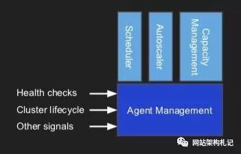 Agent management 对外提供服务器的状态信息。比如 scheduler 要分配服务器时,会通过 agent management 做 health check。