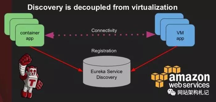 假设我们已经把 container 部署到云端了,下一步就是要让其他服务知道这个 container 的存在,也就是 service discovery。这是通过 Netflix 另一个开源项目 Eureka 来实现的。Eureka 可以发现 AWS 上的 vm 或者 Titus 上的 container。