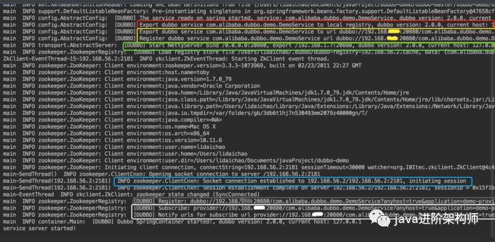 直入主题# 从启动日志说起大家都知道,dubbo是阿里巴巴开源的一个项目,前阵子阿里不仅发布的代码规范手册,还发布了相应的插件,从这点我们就知道,阿里是很注重这个代码规范的,从dubbo项目我们也发现了,他有完善的测试体系.说了这么说,那和我们今天要讲的dubbo的服务发布有什么关系呢?当然有,一个规范的项目,必然是有健全的日志系统.做过其他开发比如iOS开发的都知道,这个控制台输出在生产环境是不能随便输出的,太多日志有时候和没有日志是一样的.所以我们来看看这个服务启动过程中,日志究竟输出了什么.