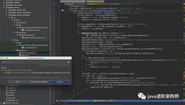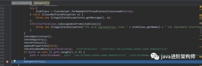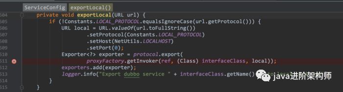 由上图知道,本地暴露的url是以injvm开头的,下面来看下远程暴露,其实这个也是回答本地暴露和远程暴露区别的一个回答点.面试回答要的并不是一个满分的答案,而是从一些细节中,看出一个人,是否真的研究过源码.