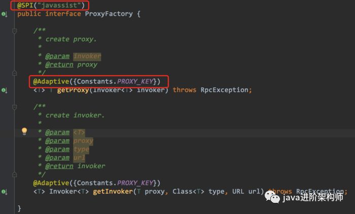 从上图可知,这里用到了Adaptive(这个东西非常关键,后面会专门一篇讲解).点进ProxyFactory查看源码