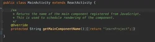 MainActivity大家肯定不陌生,默认react-native init创建的项目里,MainActivity十分简单,只有一个getMainComponentName,它就是告诉Avtivity,默认需要加载的js组件名(Component)是什么,而其余的事情,都是继承的ReactActivity帮你实现。