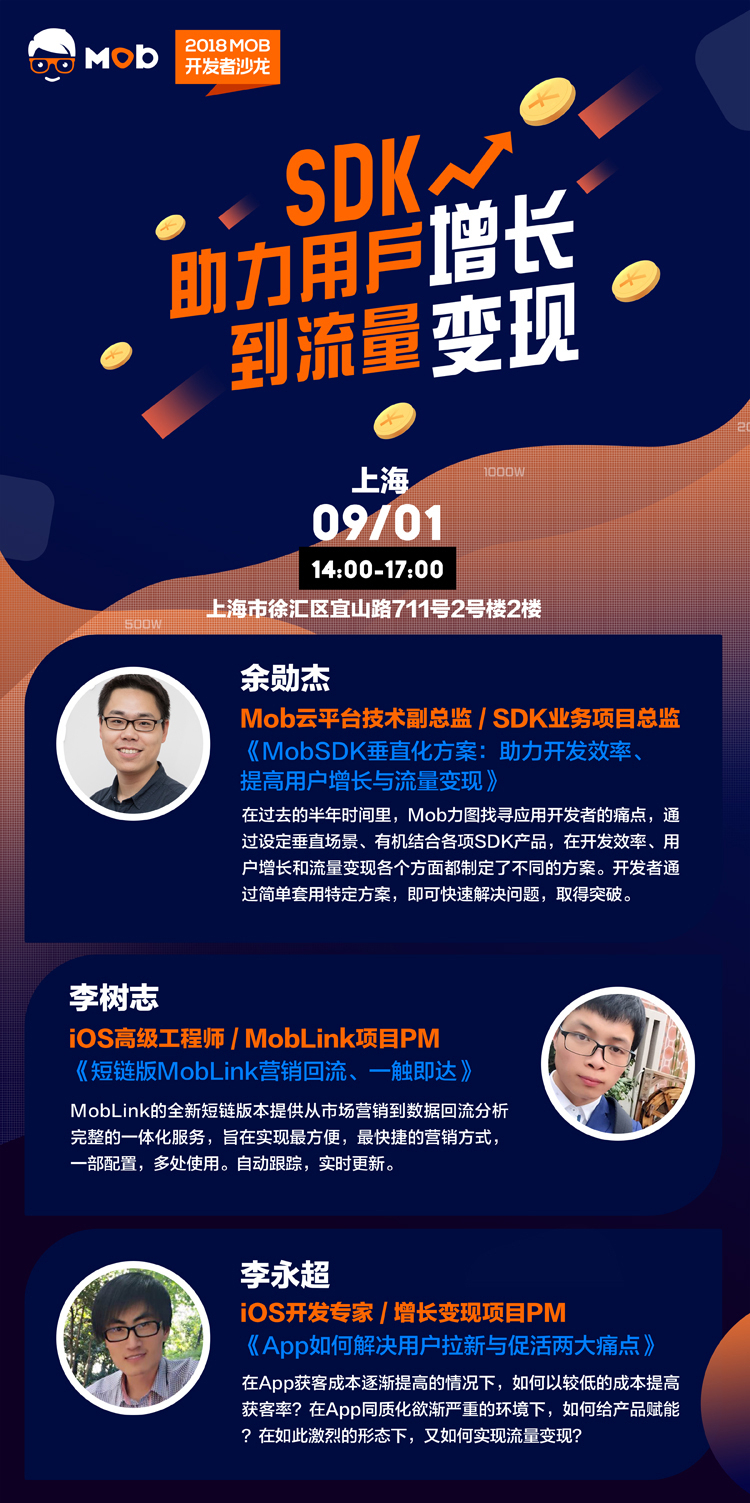 数字网络化的时代,手机,已成为社会生活的刚需,而App应用则为世界开启新的大门,增添无数奇妙的色彩,改变人们的生活方式。如今,各种App应用层出不穷,用户增长和流量变现的手段随着互联网的不断发展,在如此激烈的形态下,如何成为独角兽?9月1日,Mob将结合SDK的产品,在开发效率、用户增长和流量变现等方面为App提供新的突破口。