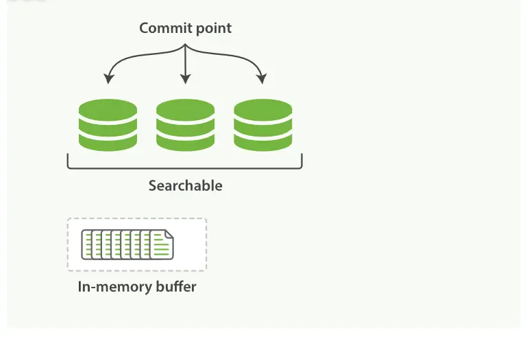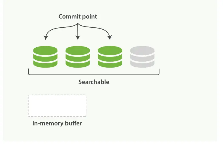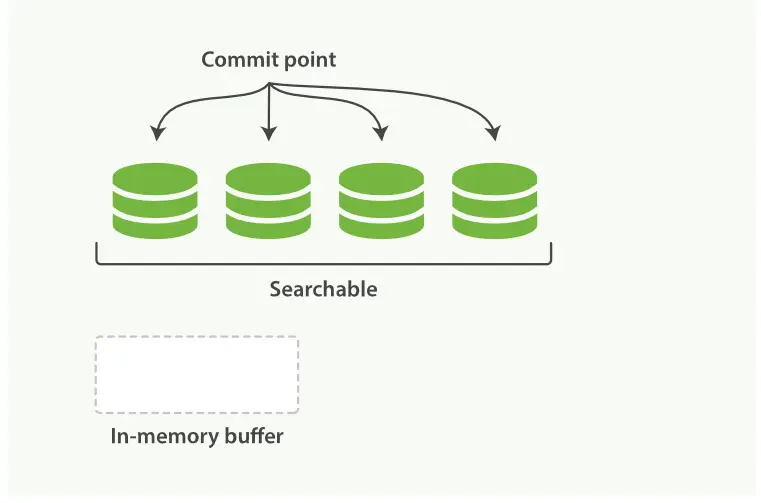 Elasticsearch底层依赖的Lucene,引入了per-segment search的概念。一个段(segment)是有完整功能的倒排索引,但是现在Lucene中的索引指的是段的集合,再加上提交点(commit point,包括所有段的文件),如图1所示。新的文档,在被写入磁盘的段之前,首先写入内存区的索引缓存,如图2、图3所示。