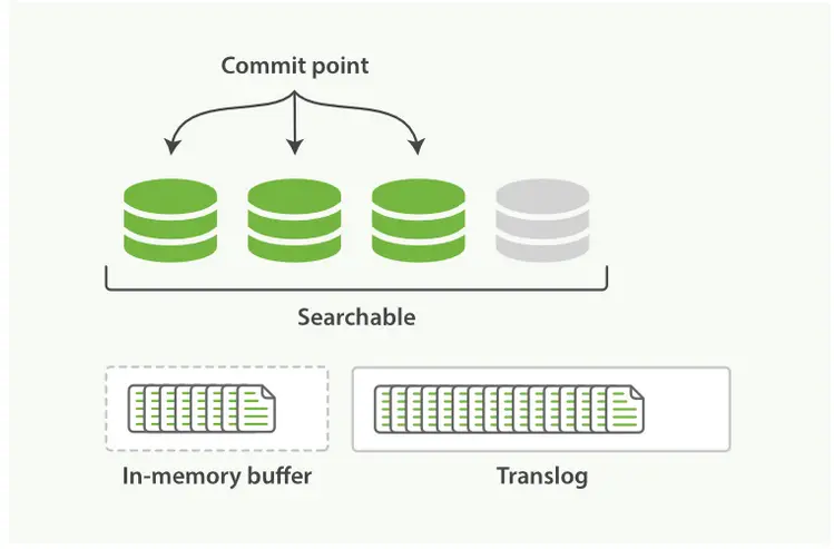 - 内存缓冲区的文档写入到段中,但没有fsync。