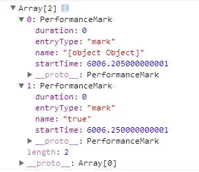 mark方法用于为相应的视点做标记。 使用 performance.mark() 也可以精确计算程序执行时间function () { if (this.cstmIdList.length == 0) { this.customerGet() } this.linker = JSON.parse(JSON.stringify(row)) window.performance.mark(this.linker) this.linker.originCstmId = this.linker.cstmId if(this.$refs['linker'] !== undefined){ this.$refs['linker'].clearValidate() } this.disabled = true if(row.mainStatus == 1){ this.disabledMainStatus = true } this.dialogTitle = '编辑联系人信息' this.btnStr = '更新' this.dialogShow = true window.performance.mark(this.dialogShow) let mark = window.performance.getEntriesByType('mark') console.log(mark) // 测量 window.performance.measure(this.dialogShow) var measure = window.performance.getEntriesByType('measure') console.log(measure) }
