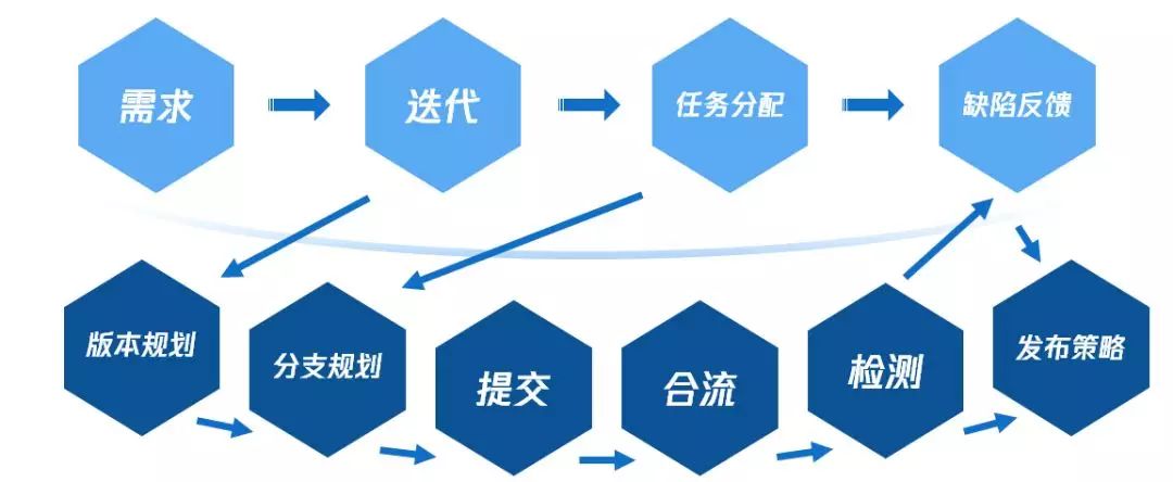 此时研发Leader有责任规范研发团队的作为,我们要改分支开发模式呢还是如何?之后提交、到合流、到缺陷反馈时候的自动化检测,最后再到发布交付都要怎麽做?