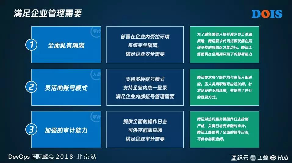 在管理层面,人员、权限、和项目必须做到企业可控,这一点也是硬性条件。