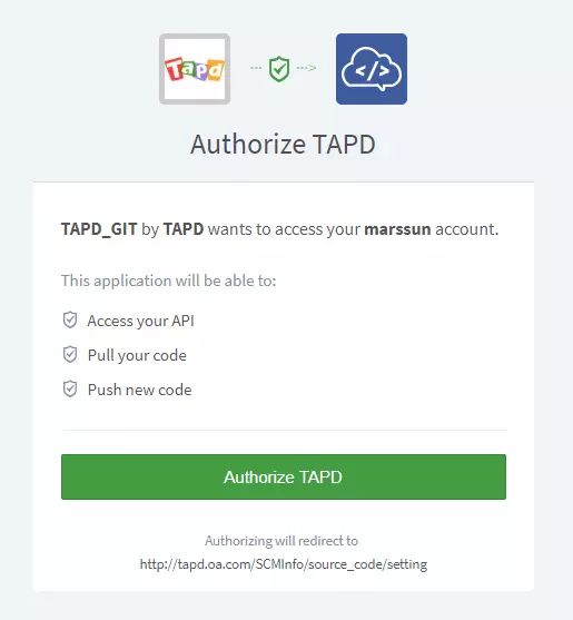 第二步,认证TAPD的授权到工蜂,这里是一个OAuthV2的授权框